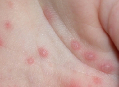 발진은 주로 손바닥, 발바닥, 엉덩이, 무릎, 팔꿈치 등 접촉이 잦은 부위에 나타나며, 수포는 가려움증과 통증을 유발할 수 있습니다. 수포는 시간이 지나면서 터지거나 딱지가 생길 수 있습니다.